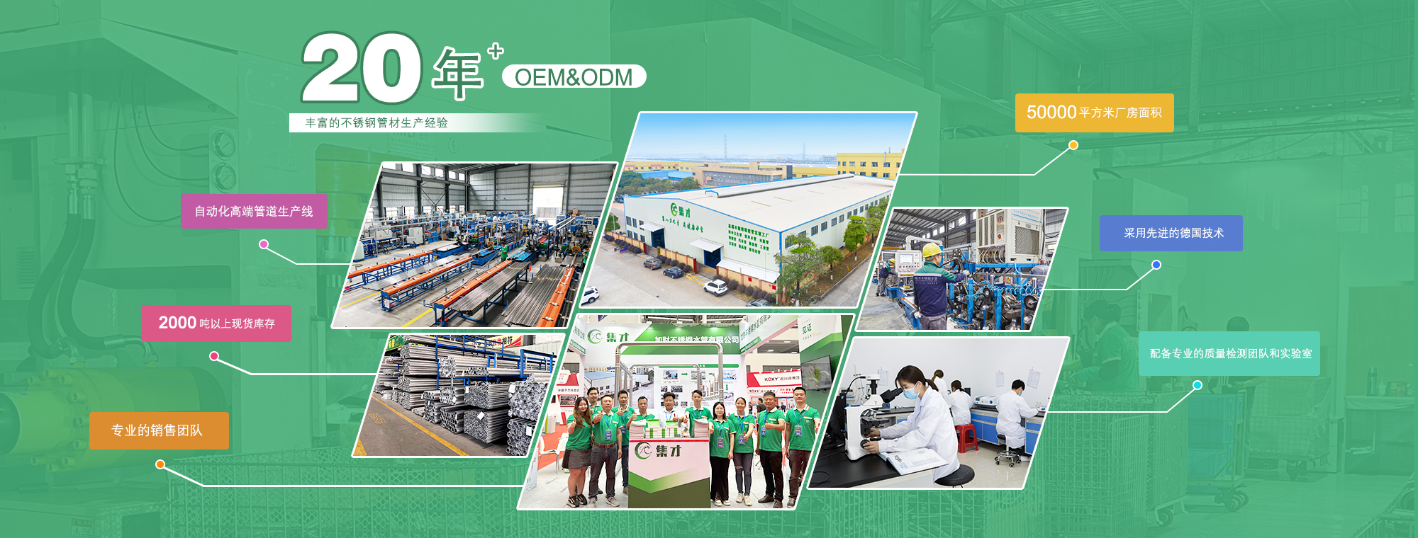 廣東集才管益管道科技有限公司,坐落于全球知名不銹鋼產業基地佛山,占地規模達30,000平方米,專注于不銹鋼焊接管及其配套配件的現代化生產制造企業。公司依托40條高度自動化的生產線、300多臺尖端生產設備、108道嚴密質檢工序,以及一支由100多名專業人員組成的生產管理團隊,實現了年產能過萬噸的規模化生產,產品廣泛分布于全國市場,深受好評。產品嚴格按照國內外多項標準,包括不銹鋼食品衛生管,(ASTM A270、DIN 11850);薄壁飲用水不銹鋼管(GB/T 19228 EN 10312);鍋爐熱交換器、冷凝器用不銹鋼管(ASTM A249、EN 10217-7、GB/T 24593);建筑裝飾和機械結構用不銹鋼管(ASTM A554、GB/T 12770);工業配管用不銹鋼鋼管(ASTM A312 、GB/T12771 );專注生產高質量產品,致力滿足市場的多元化需求。
